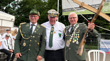 Andreas Kenkel (Mitte) ist 2025 neuer König des Dinklager Schützenvereins.